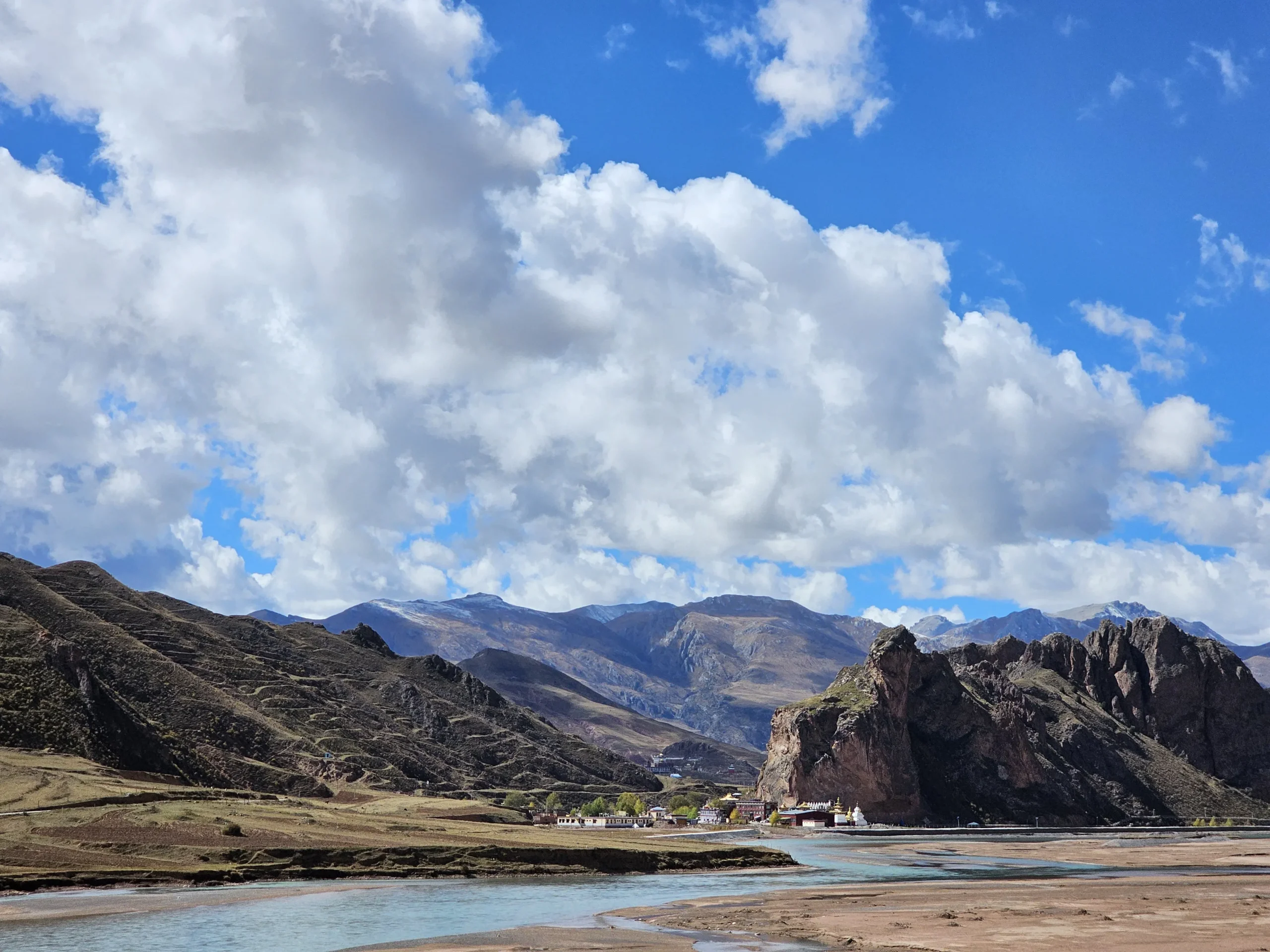 These inner visions, together with the prophecies of accomplished masters, strengthened his resolve to manifest a reflection of Zangdok Palri. In seeking the perfect site for his monastery, Gyaltsen Rinpoche recognised Dhonggar Mountain as especially auspicious. The local laypeople named it “Dhonggar” (literally “white conch shell”) because of its striking resemblance to a white conch. This sacred shell is one of the Eight Auspicious Symbols of Tibetan Buddhism, its significance reaching back to the days right after the Buddha’s enlightenment.